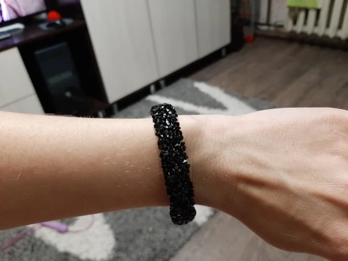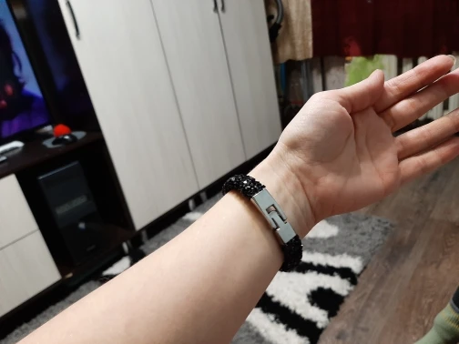 Delivery is fast. The bracelet itself is flimsy. On a brilliant basis in a variety of pebbles are pasted, and not very well, I think after the first socks half fall off, because already hang out. The fastener is not comfortable, it’s hard to fasten.