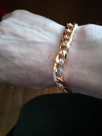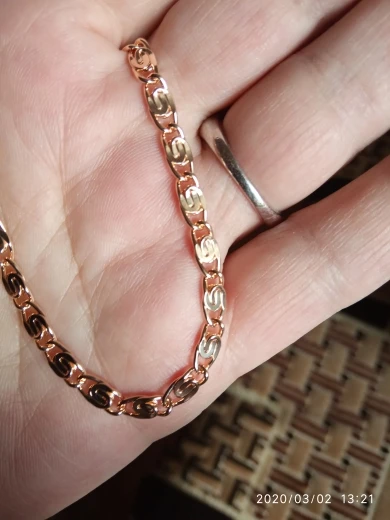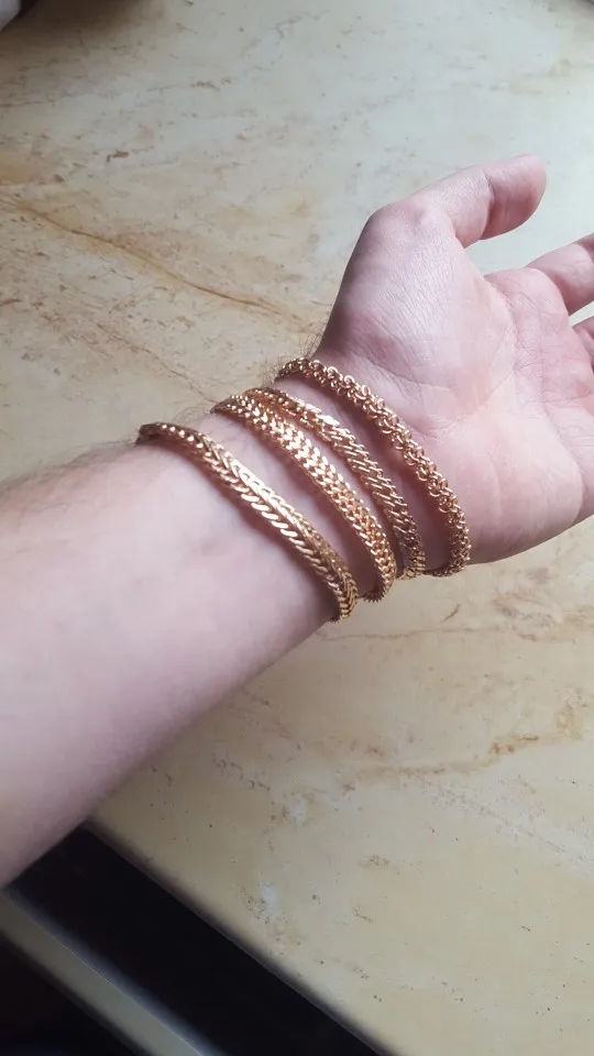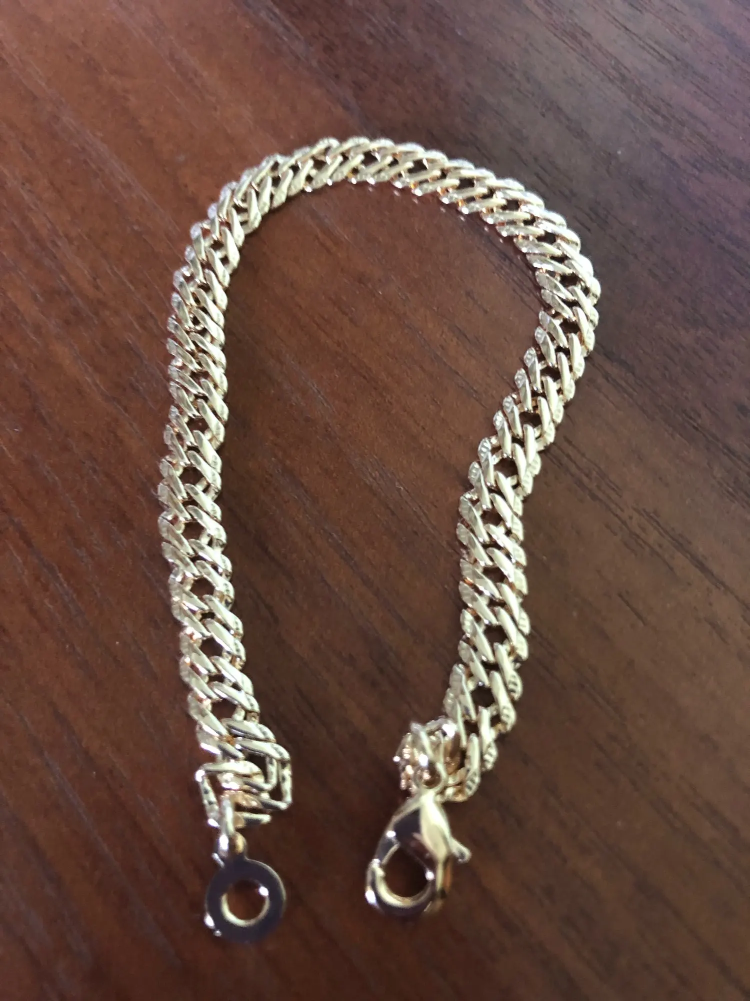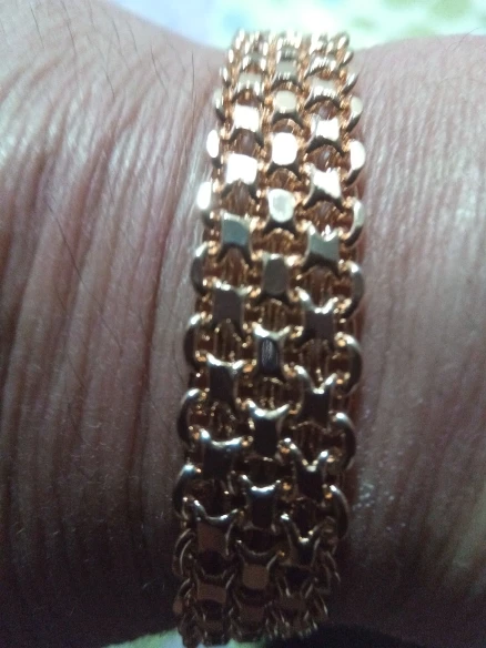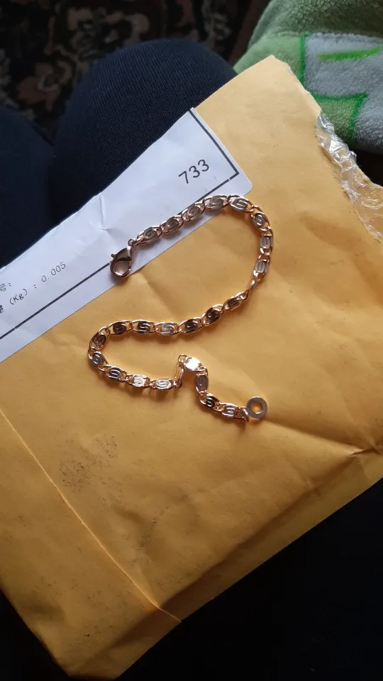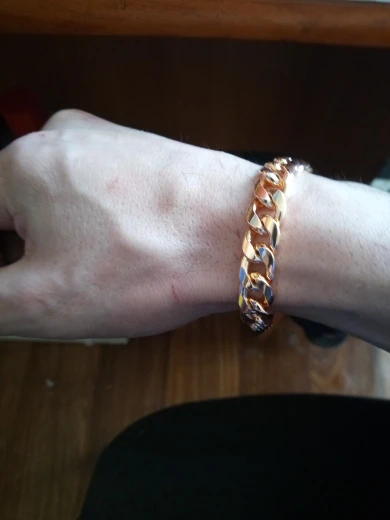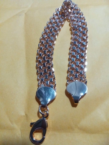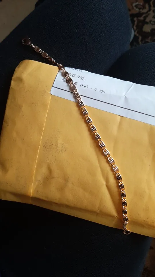 I got my bracelet, I’m delighted!! Cool bracelet, gold is very similar, if you do not compare with gold, and gold is different, so you can not distinguish. Size is right for me, thank you very much! Excellent packed, everything is safe and sound, in Moscow came for 27 days, I recommend the seller!