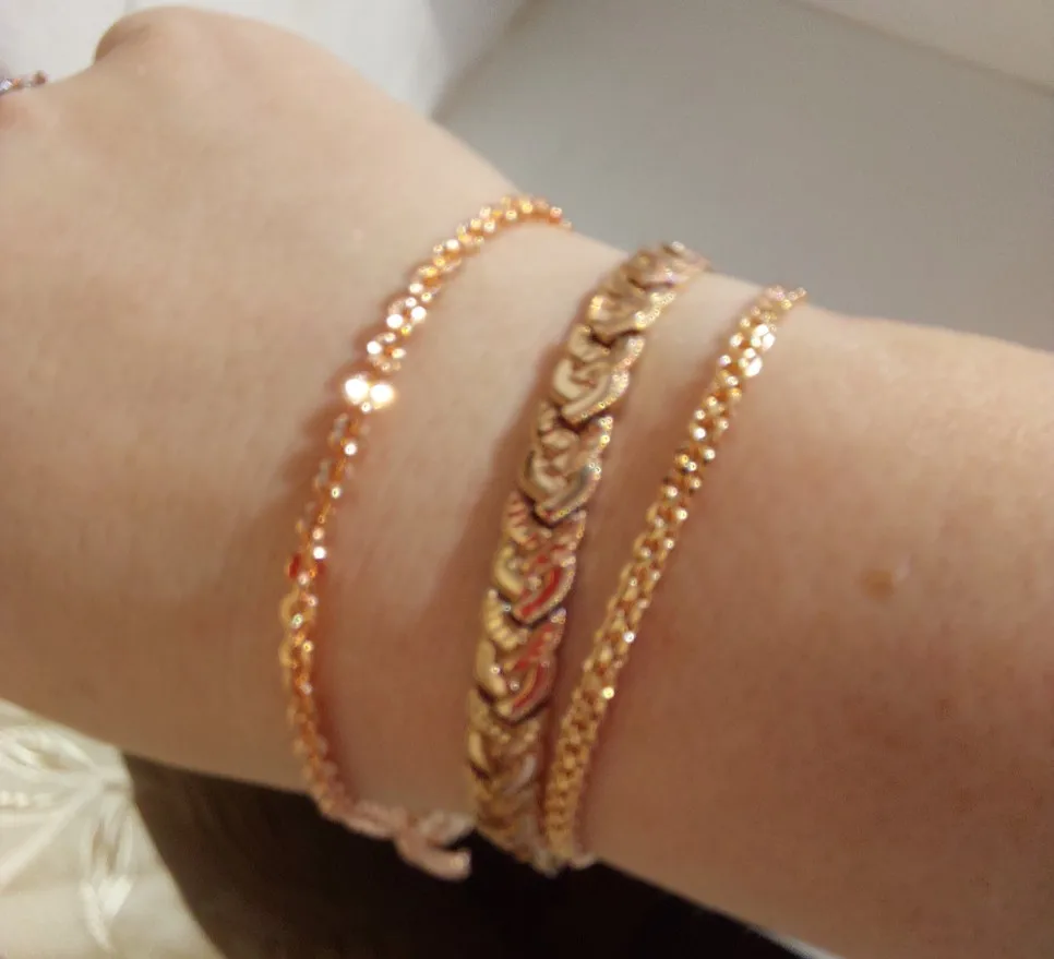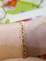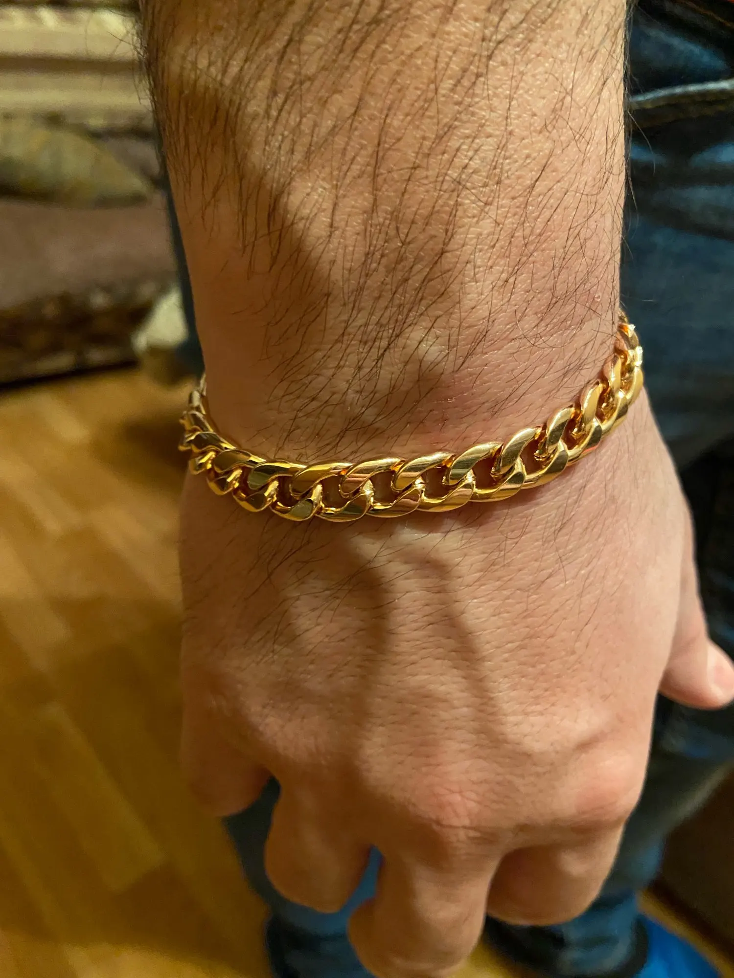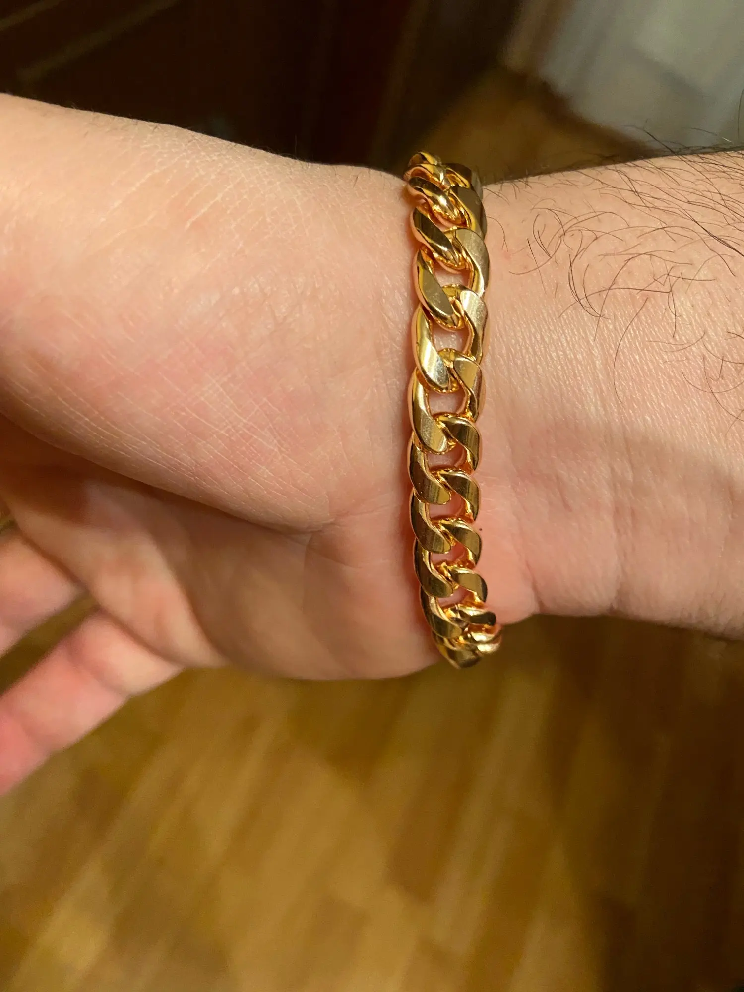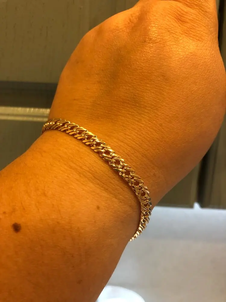 I got my bracelet, I’m delighted!! Cool bracelet, gold is very similar, if you do not compare with gold, and gold is different, so you can not distinguish. Size is right for me, thank you very much! Excellent packed, everything is safe and sound, in Moscow came for 27 days, I recommend the seller!