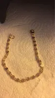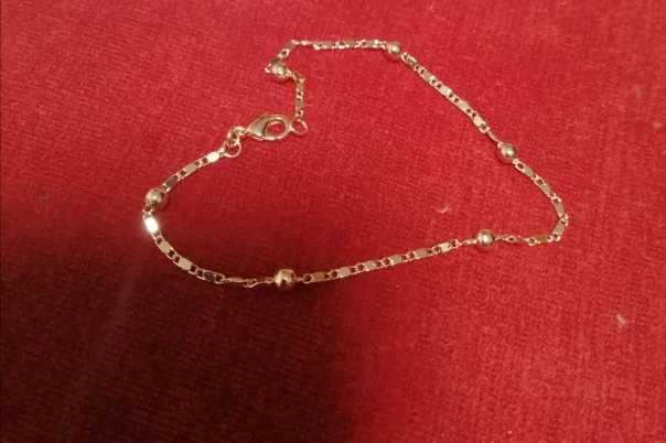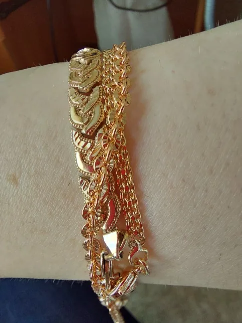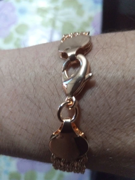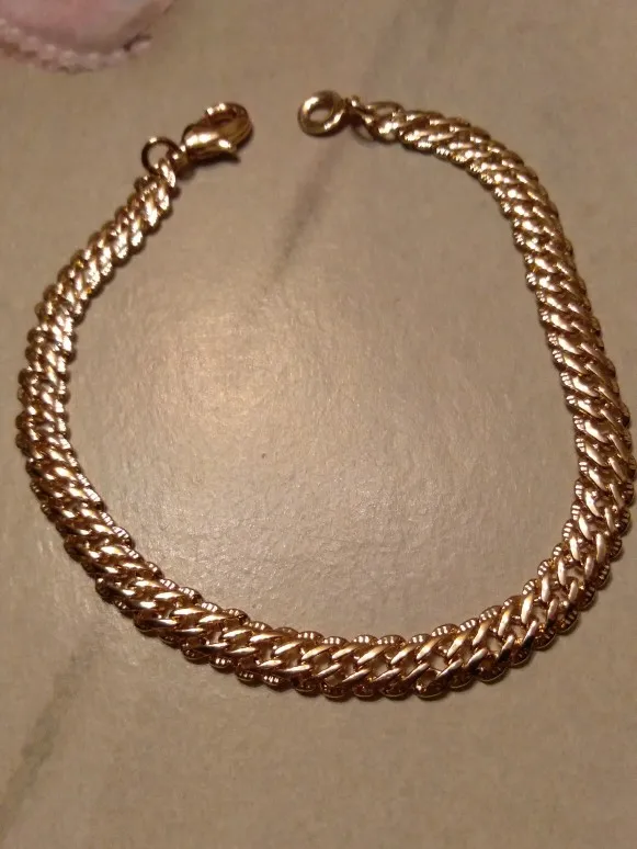 The bracelet is beautiful, similar to gold, but differs in that it is too shiny. Beautiful costume jewelry