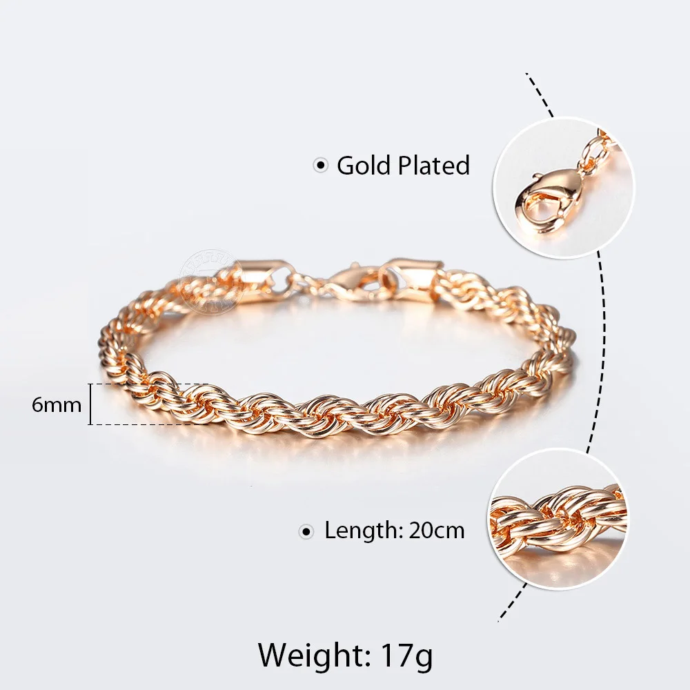 585 Rose Gold Curb Snail Foxtail Venetian Link Chains Bracelets for Women & Men