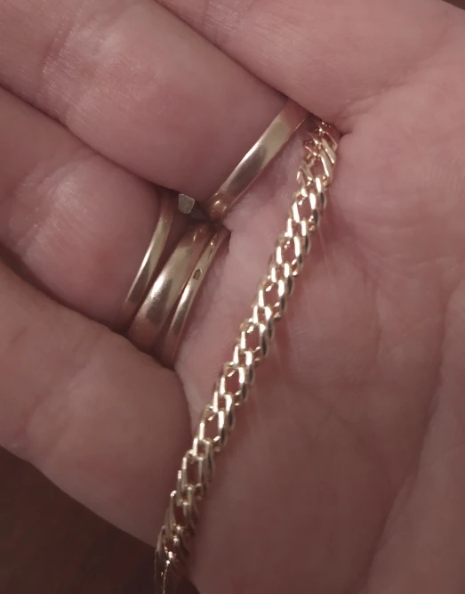 The bracelet is beautiful. In the photo next to the gold rings, do not distinguish.