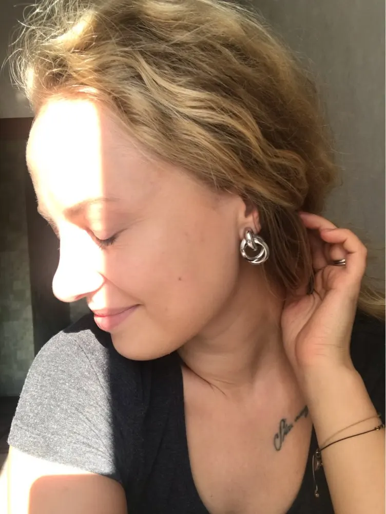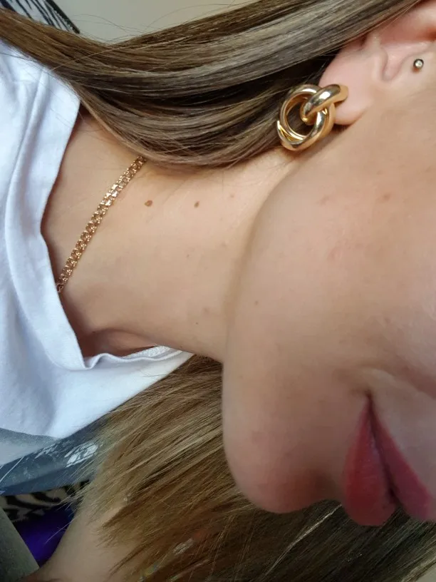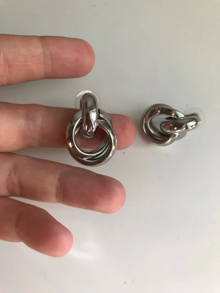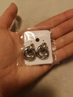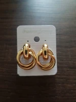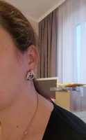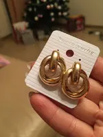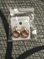 Shipping free, took 26 days to the Post Office, track number tracked all the way. The package was securely packed, and the earrings were in individual packages. I ordered two pairs of earrings at once, the first-metal in gold color, and the second with velvet coating. Cute little stud earrings, made in the form of interlacing rings. Manufacturing Material: alloy. Size: 2,8*1,9 cm. Type of fastening carnations, metal fastener with silicone gasket. Earrings are comfortable, in the ear are not felt, excellent both everyday option and option for events. To buy I recommend, especially for such a pleasant price!