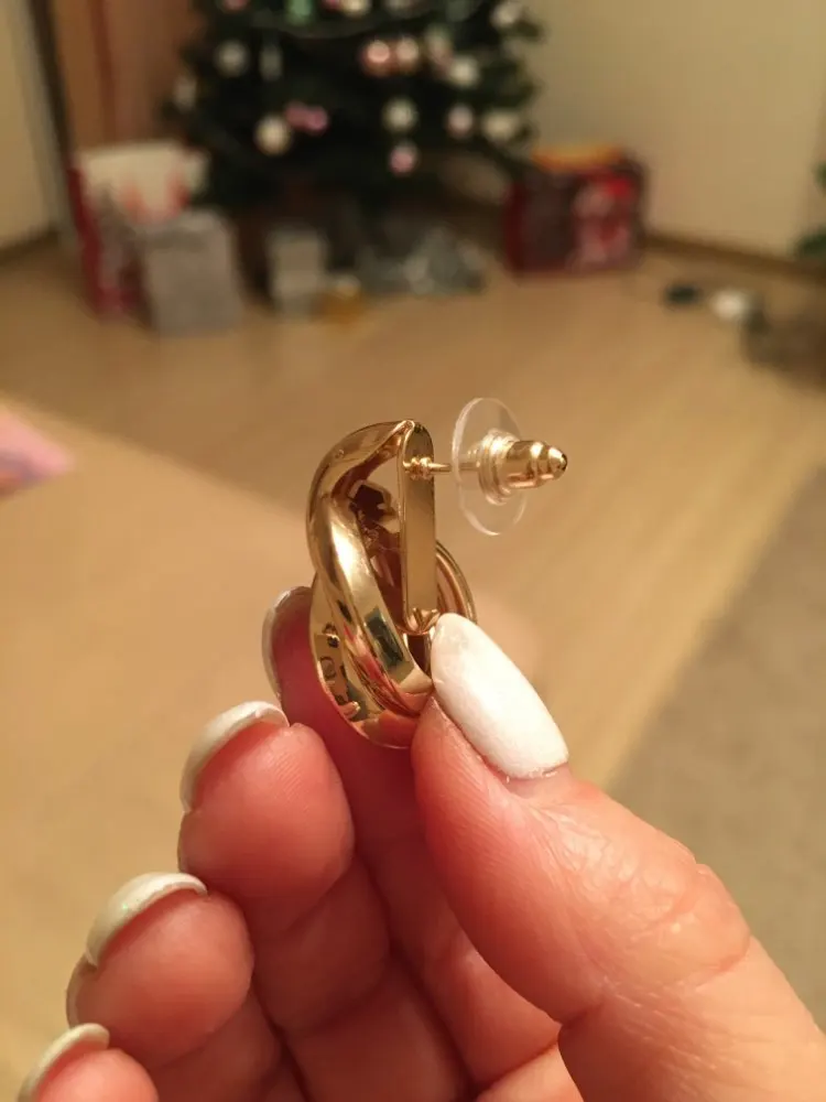 Earrings are cute, look stylish, came without scratches and rubbing. I hope the coating will not be erased quickly when you wear it, and so in general, I’m happy
