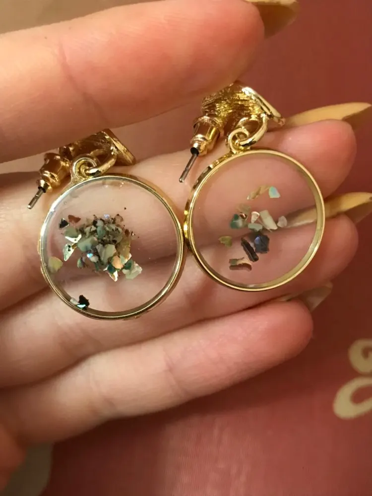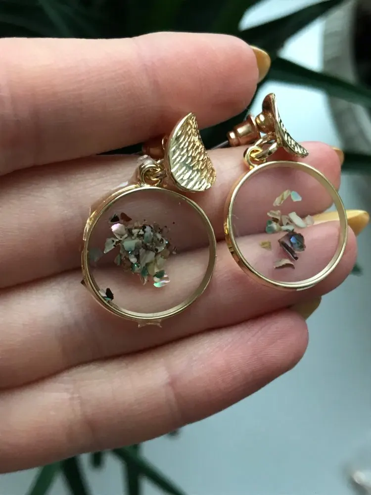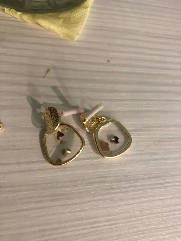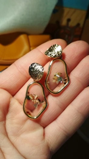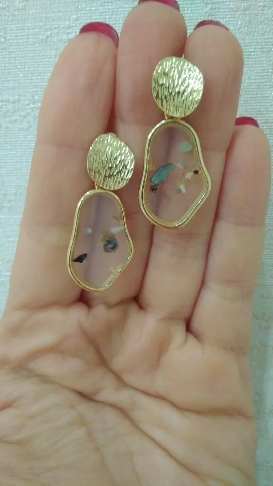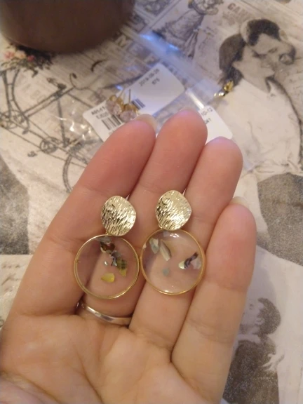 21.10-14.11 shipping!!! Earrings are cute, but for me so the resin is cloudy and the color is gilding yellow. The seller is good-delivery is fast, in one package packed my second order from him.