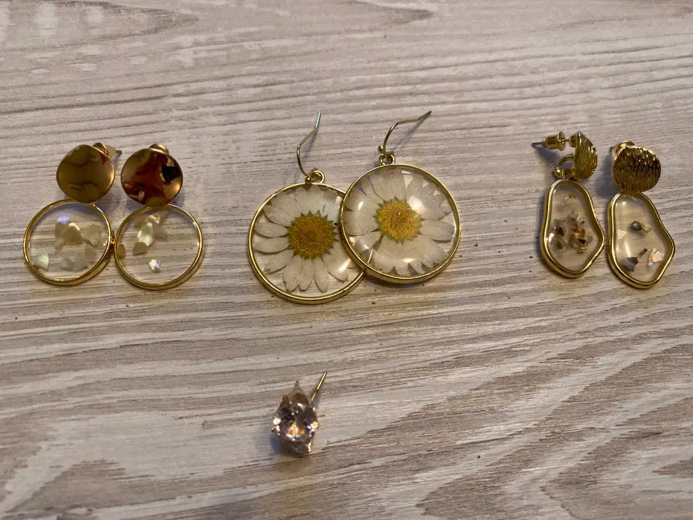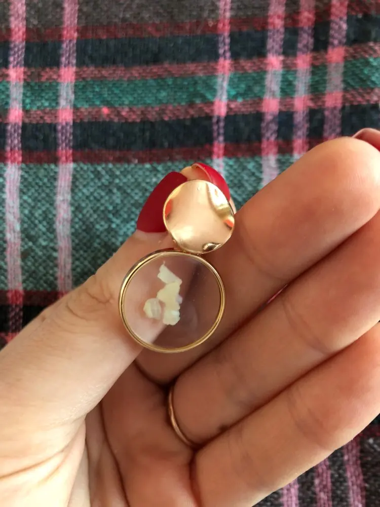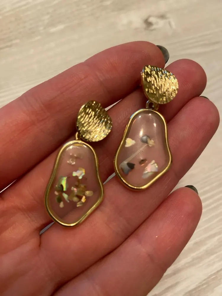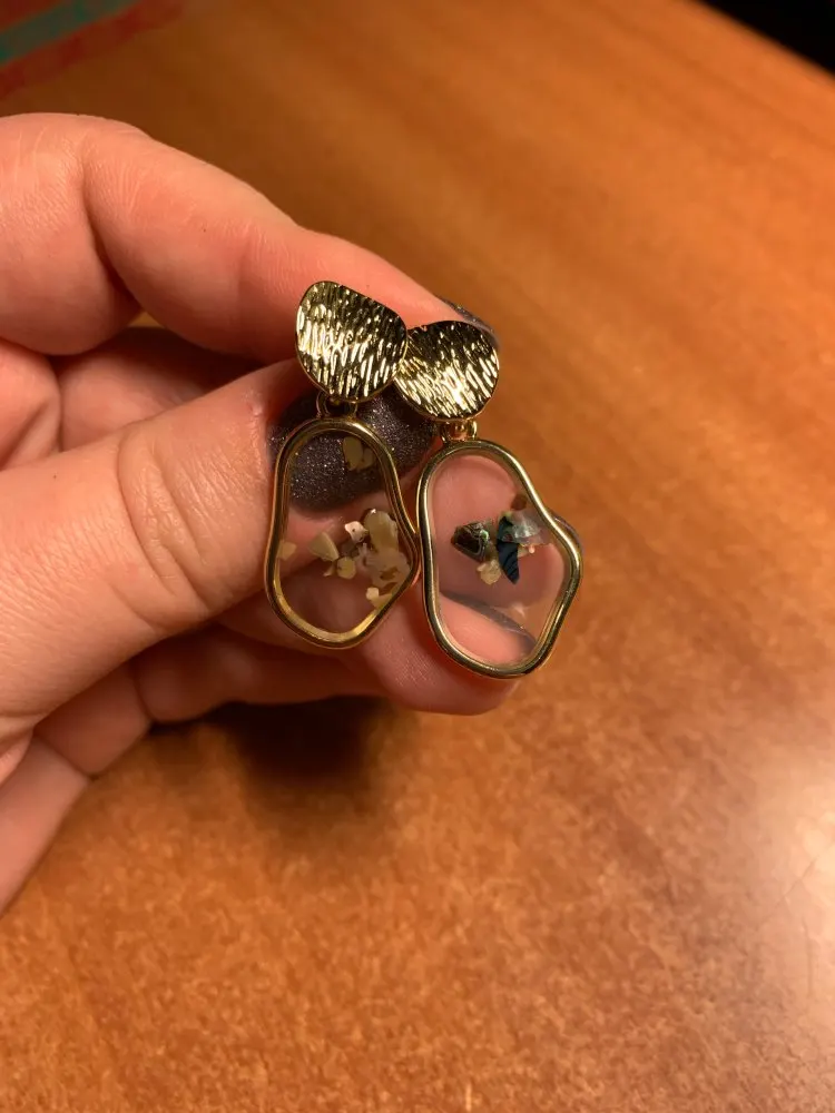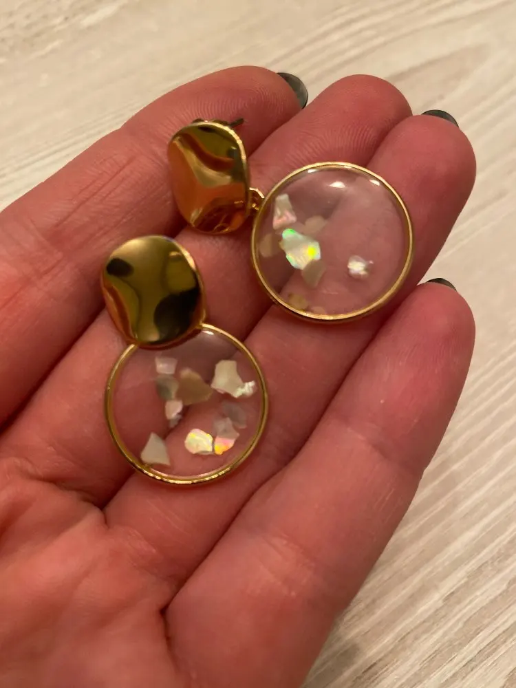 21.10-14.11 shipping!!! Earrings are cute, but for me so the resin is cloudy and the color is gilding yellow. The seller is good-delivery is fast, in one package packed my second order from him.