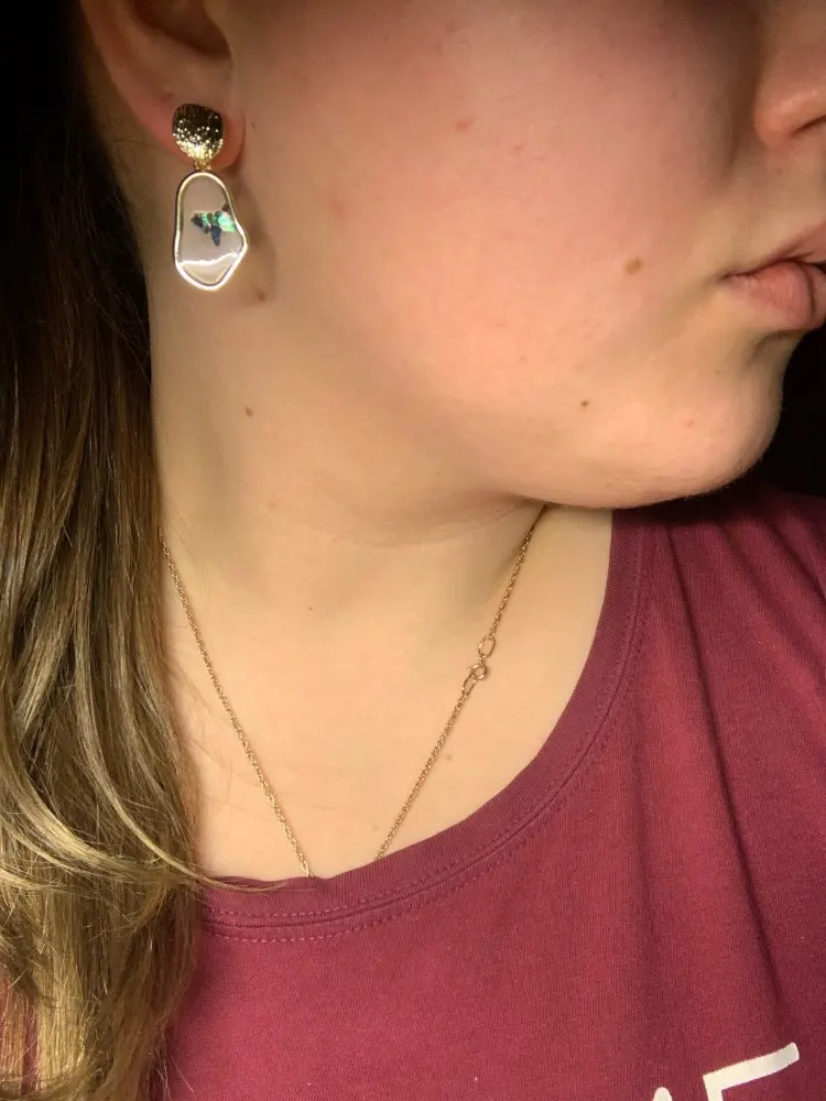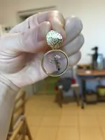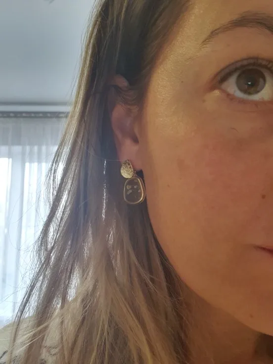 The quality is pleasantly surprised, all metal and light, it’s nice to ring. Small. The plug keeps the earring well.