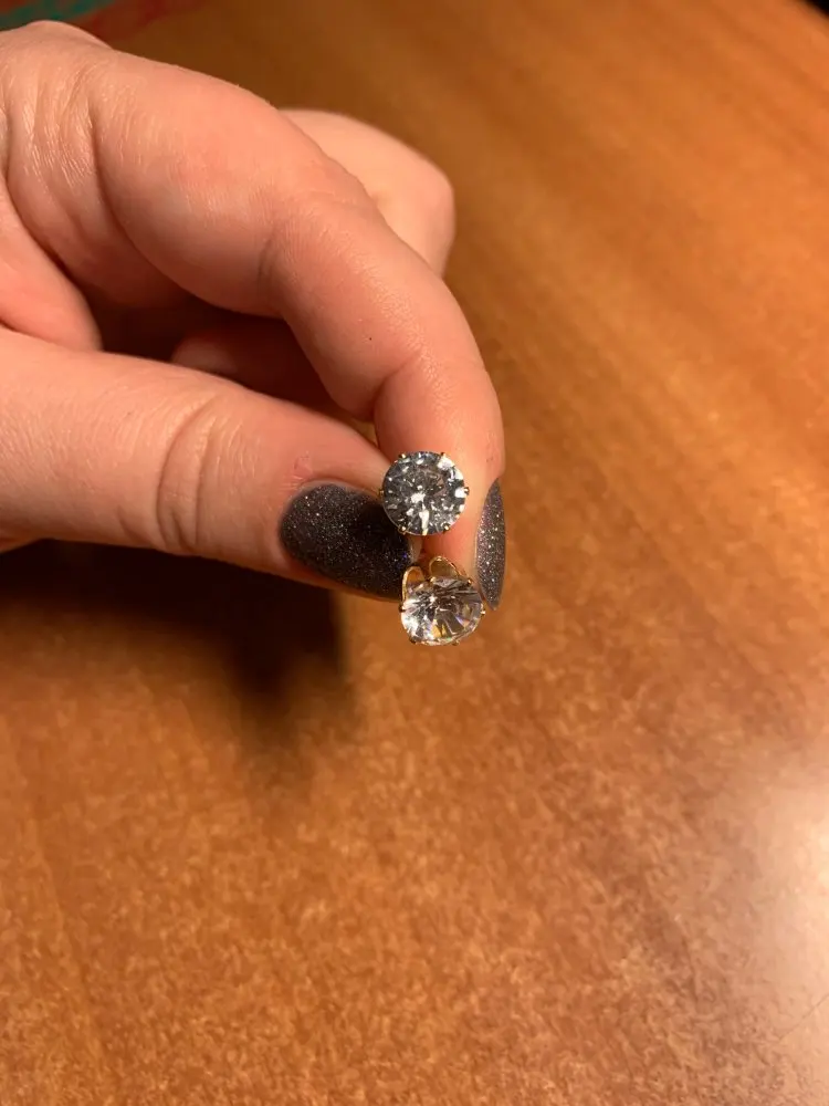 But the gift pair is straight and says, we stand ruble 2 although they sparkle beautifully. The ears are disgusting.