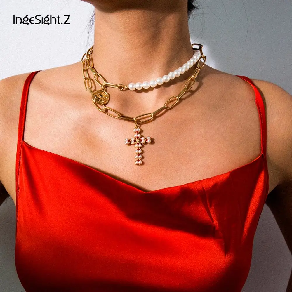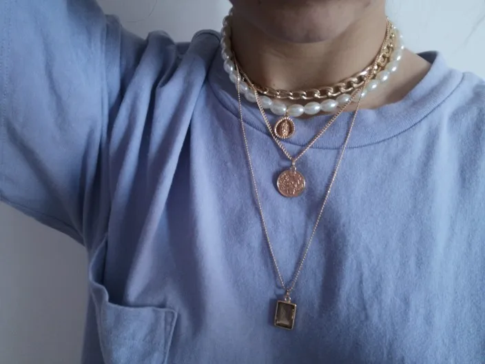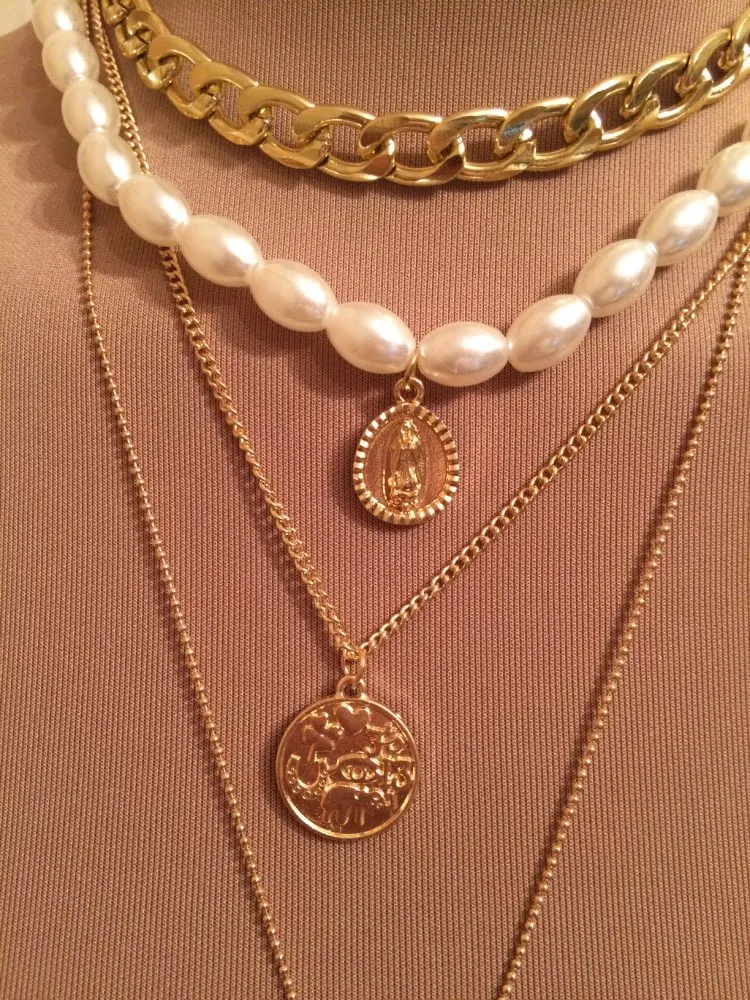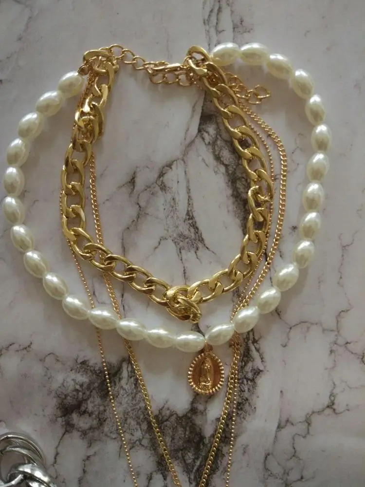 24 reviews for Punk Multi Layered Pearl Choker Statement Pendant Necklace