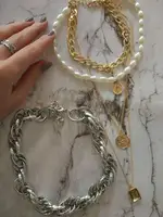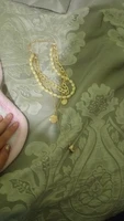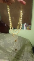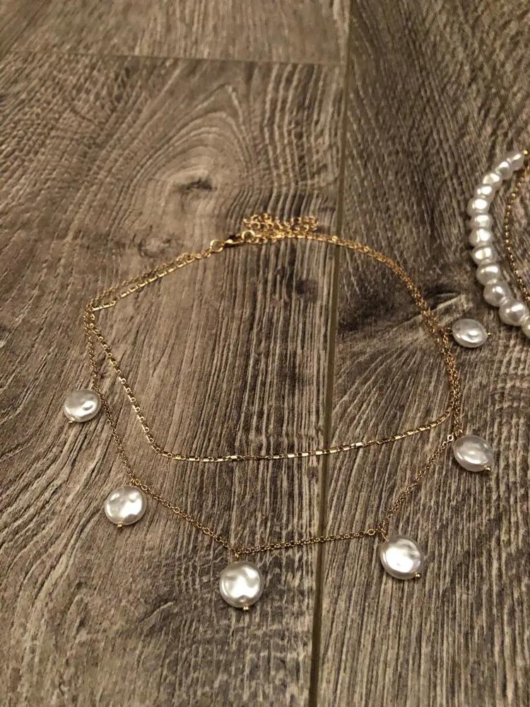 Beautiful decoration. Fully corresponds to the photo. Most likely it will darken with time, but the price justifies it. It is better, perhaps, to wear not on a naked body. The necklace consists of two separate chains, which is very convenient, because you can wear separately depending on the image and mood. I advise you to buy. Delivery to Mo was about 2 months.
