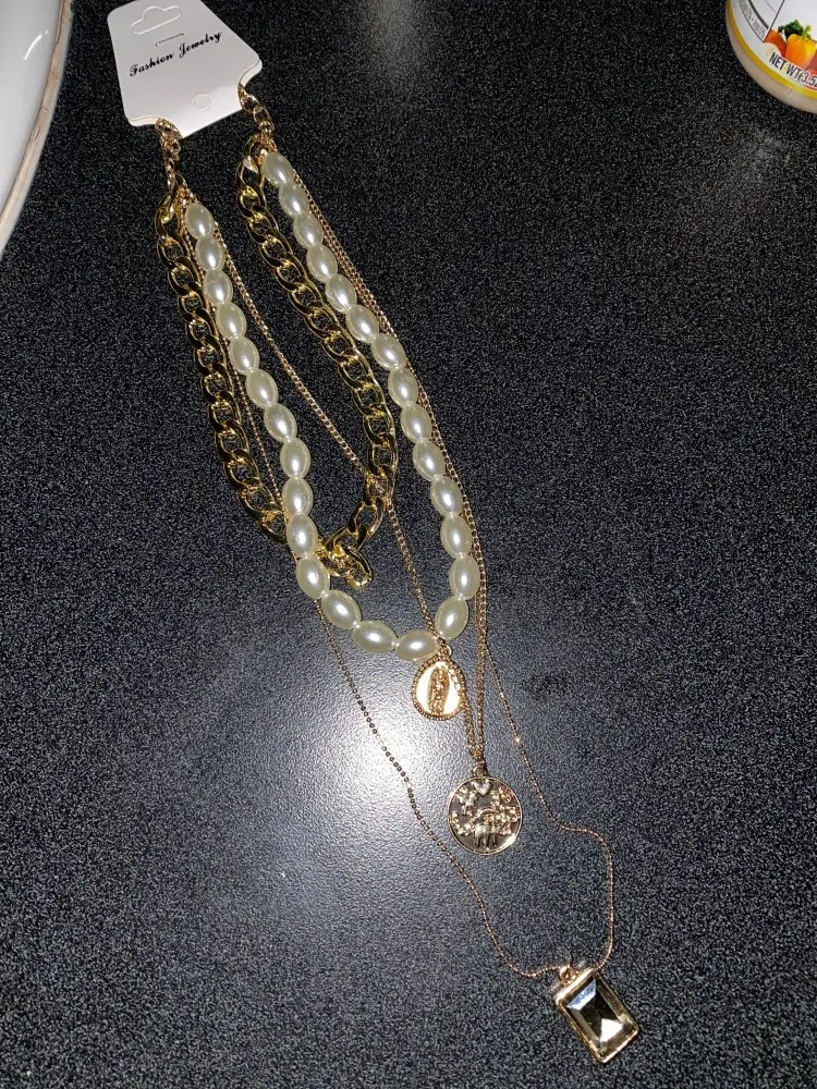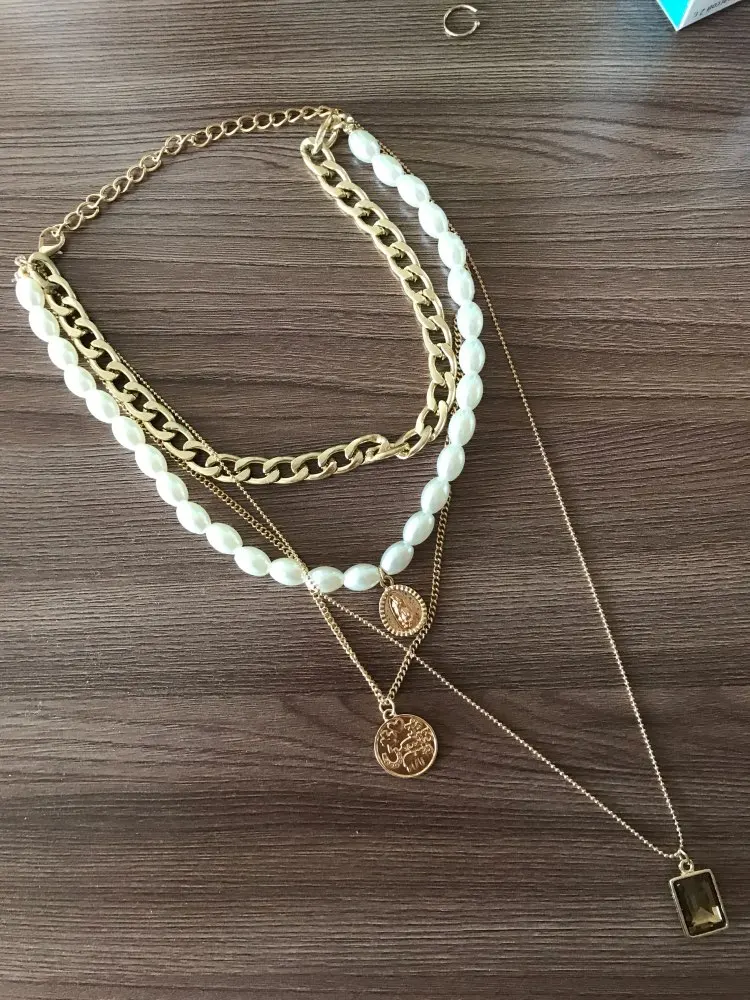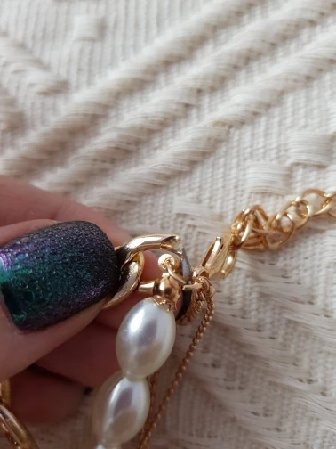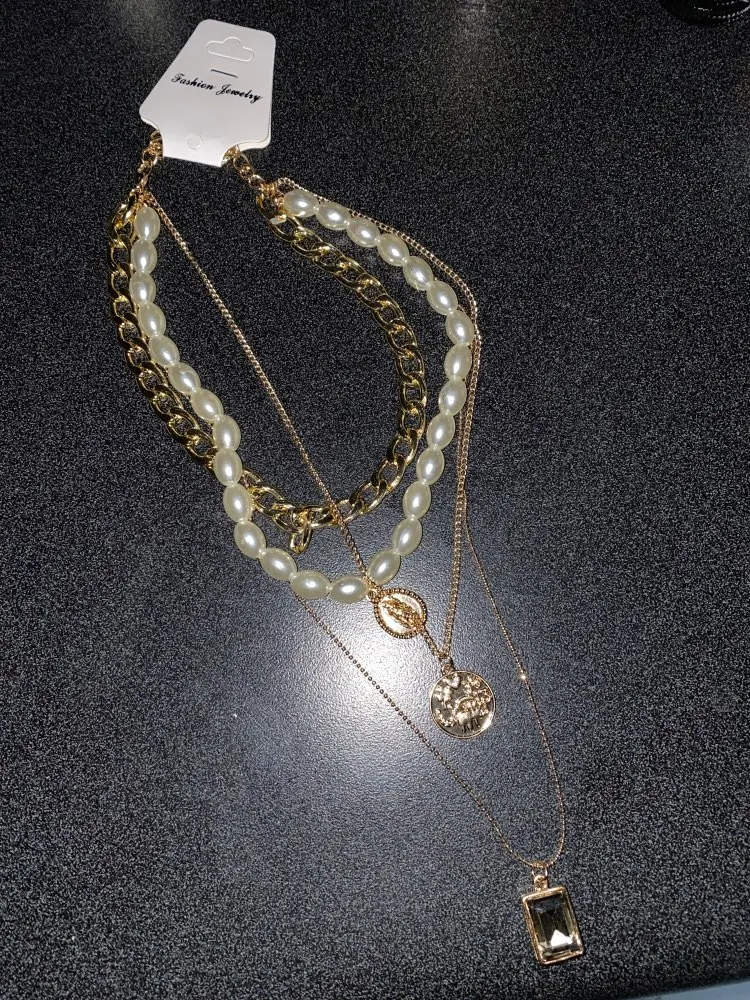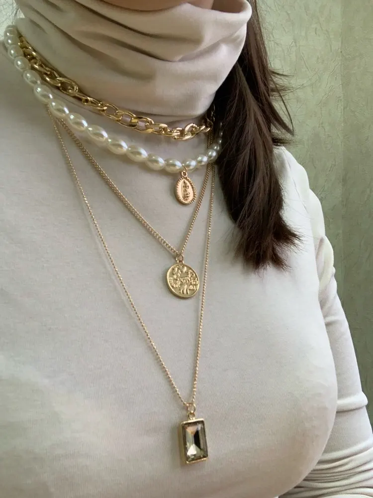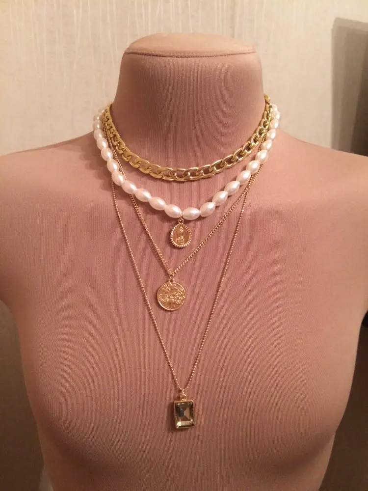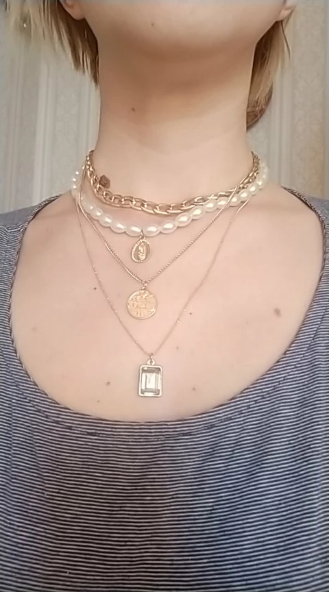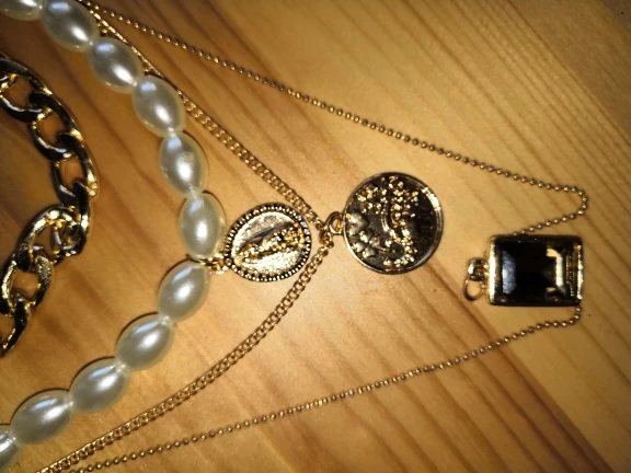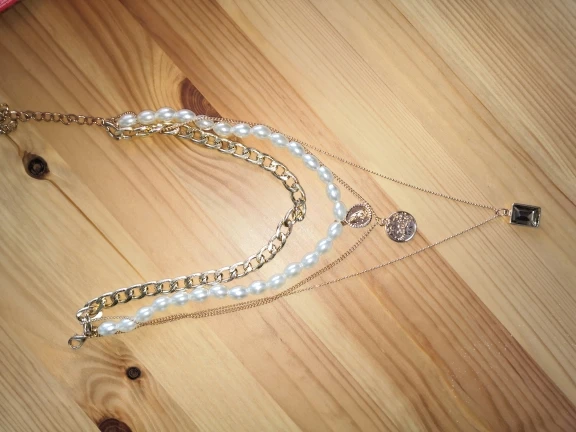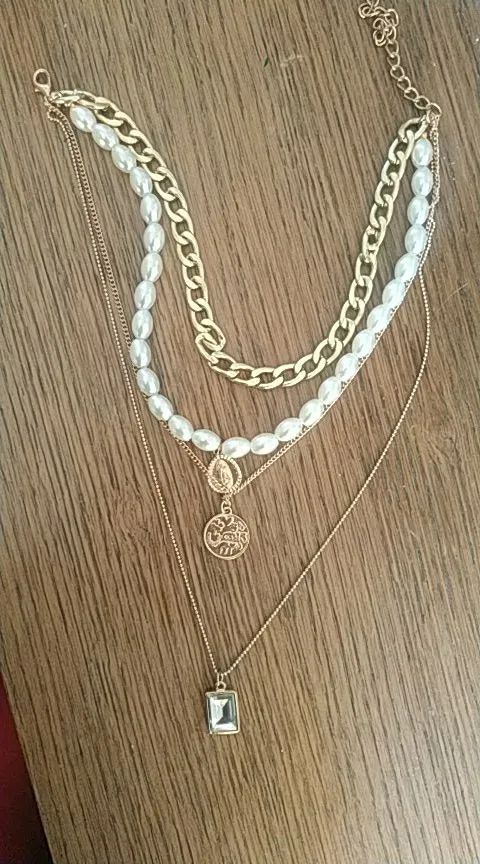 It came quickly (a little less than a month). The costume jewelry itself was packed in a bag with pouches. The decoration consists of 4 parts, connected in one single additional chain on one side and a carabiner on the other: 1. chain short metal, 2. “Pearl” necklace with medallion (plastic beads, but beautiful), 3. chain with round links with medallion (metal material), 4. chain with links of beads with crystal-glass (As it seemed to me-plastic). On the shortest first chain is the untreated edge of the connection. The carbine is heavy, it opens completely through times. In general, a worthy thing for such a price. Delivery time to Siberia sincerely pleased. In the photo I tried to show as accurately as possible, which is how and why. I did not communicate with the seller.