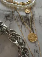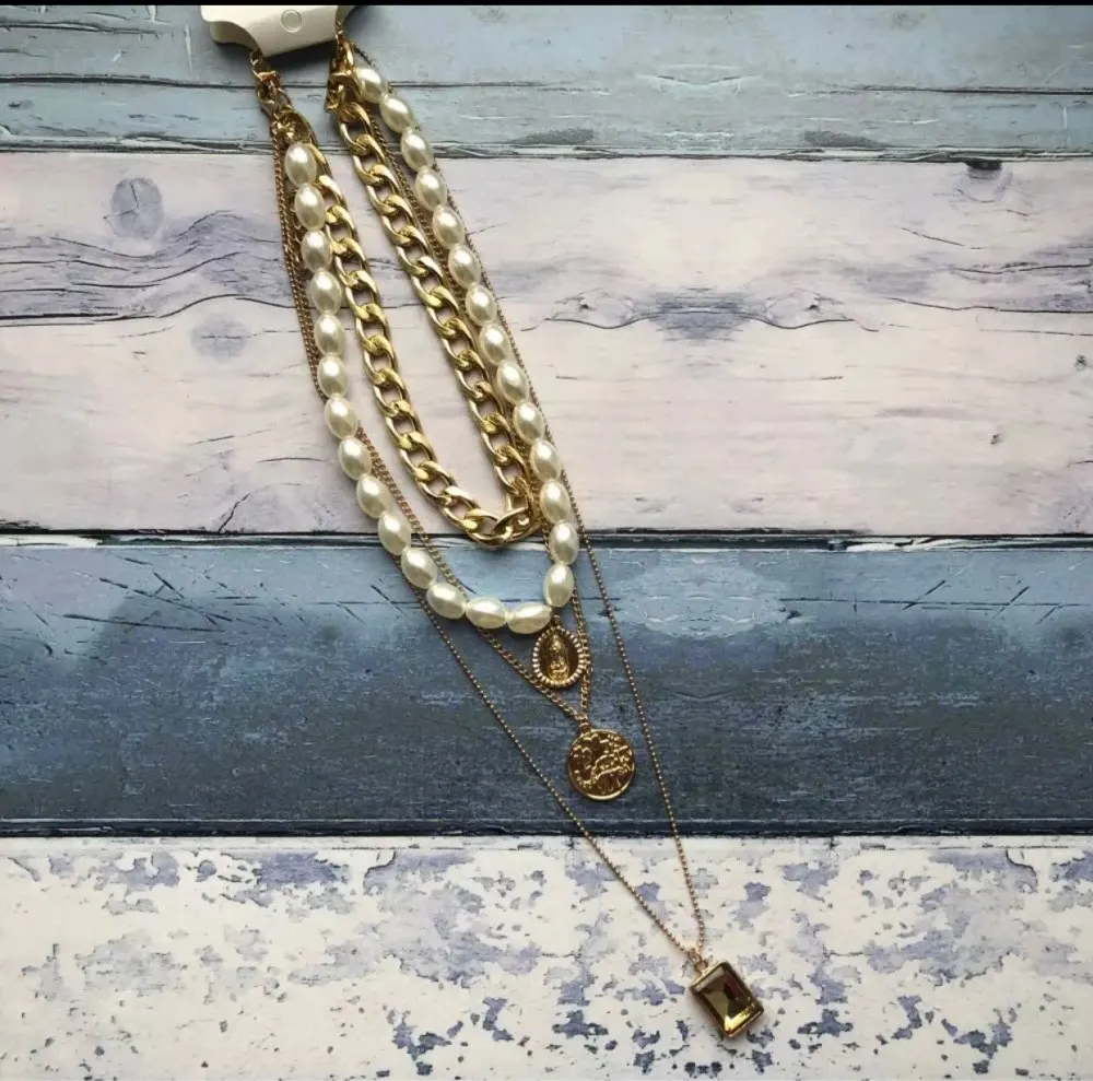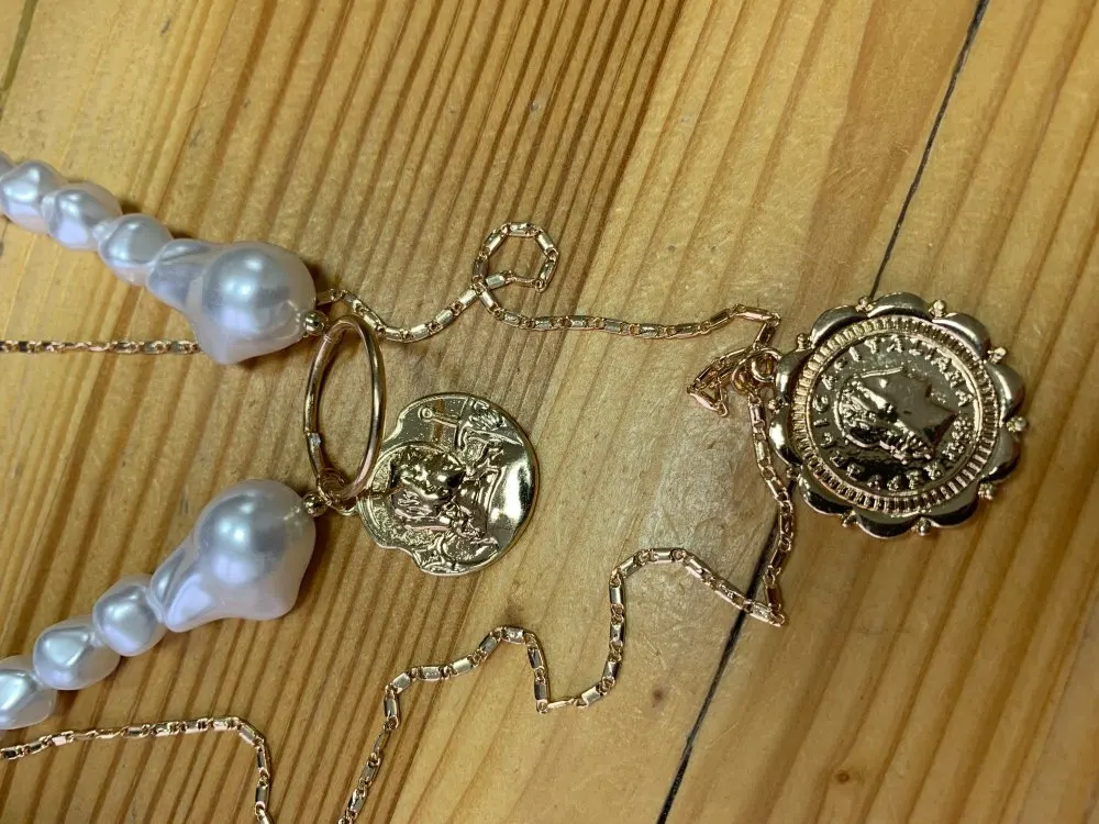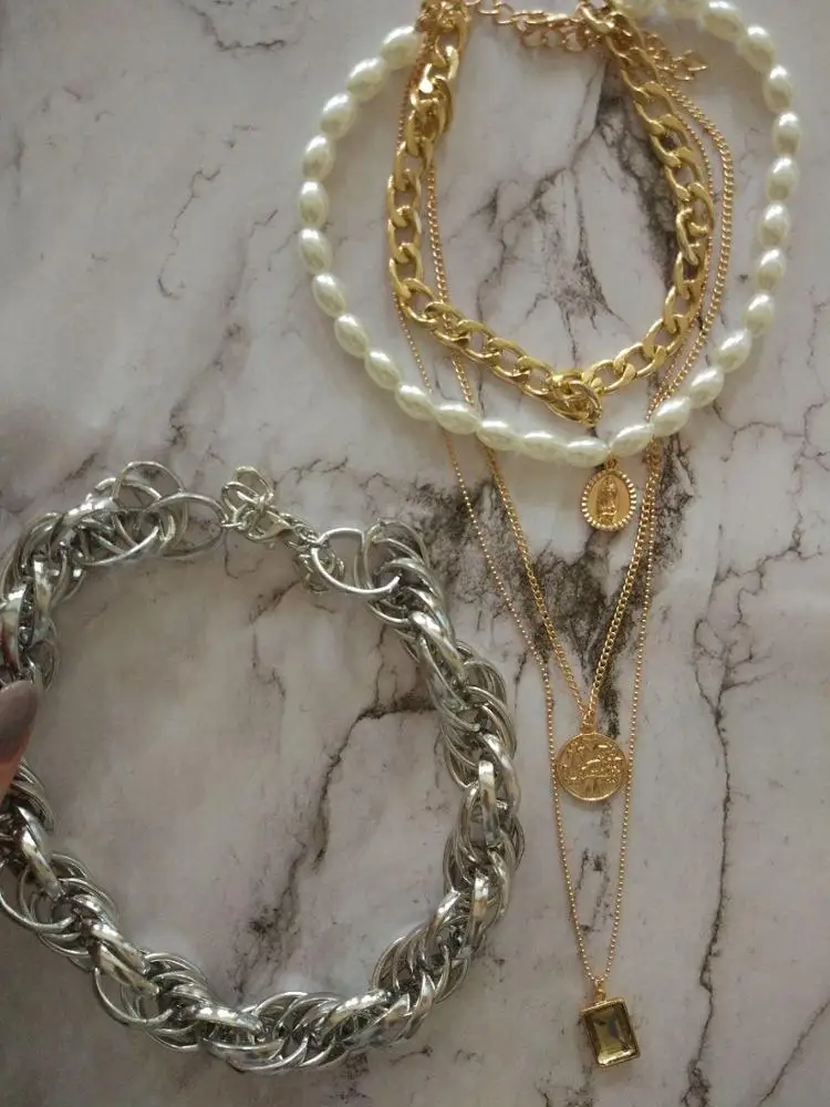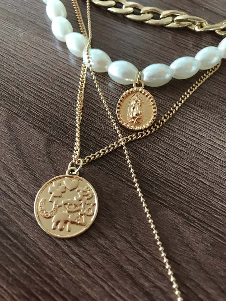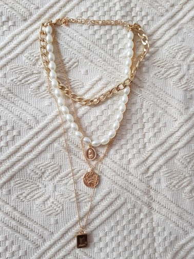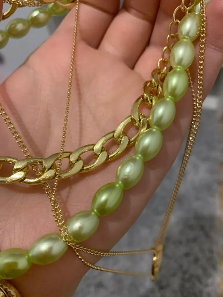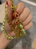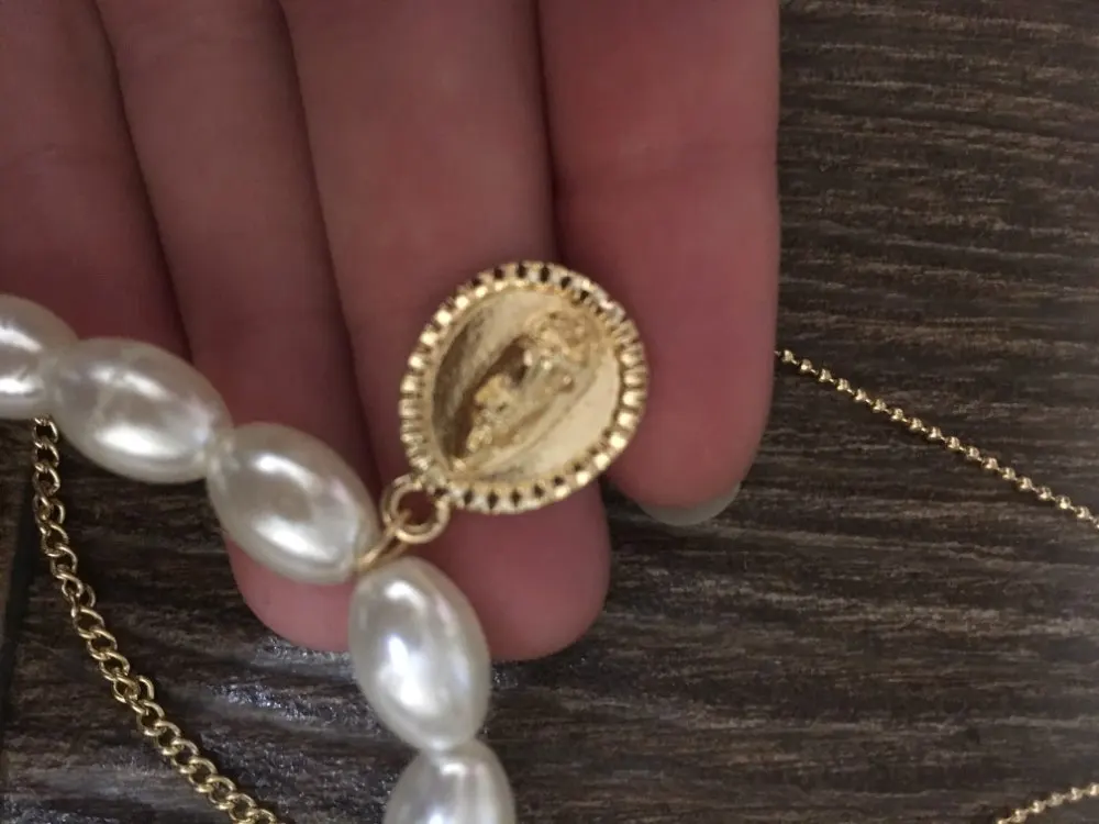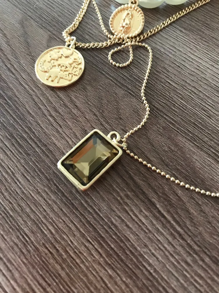 It came quickly (a little less than a month). The costume jewelry itself was packed in a bag with pouches. The decoration consists of 4 parts, connected in one single additional chain on one side and a carabiner on the other: 1. chain short metal, 2. “Pearl” necklace with medallion (plastic beads, but beautiful), 3. chain with round links with medallion (metal material), 4. chain with links of beads with crystal-glass (As it seemed to me-plastic). On the shortest first chain is the untreated edge of the connection. The carbine is heavy, it opens completely through times. In general, a worthy thing for such a price. Delivery time to Siberia sincerely pleased. In the photo I tried to show as accurately as possible, which is how and why. I did not communicate with the seller.