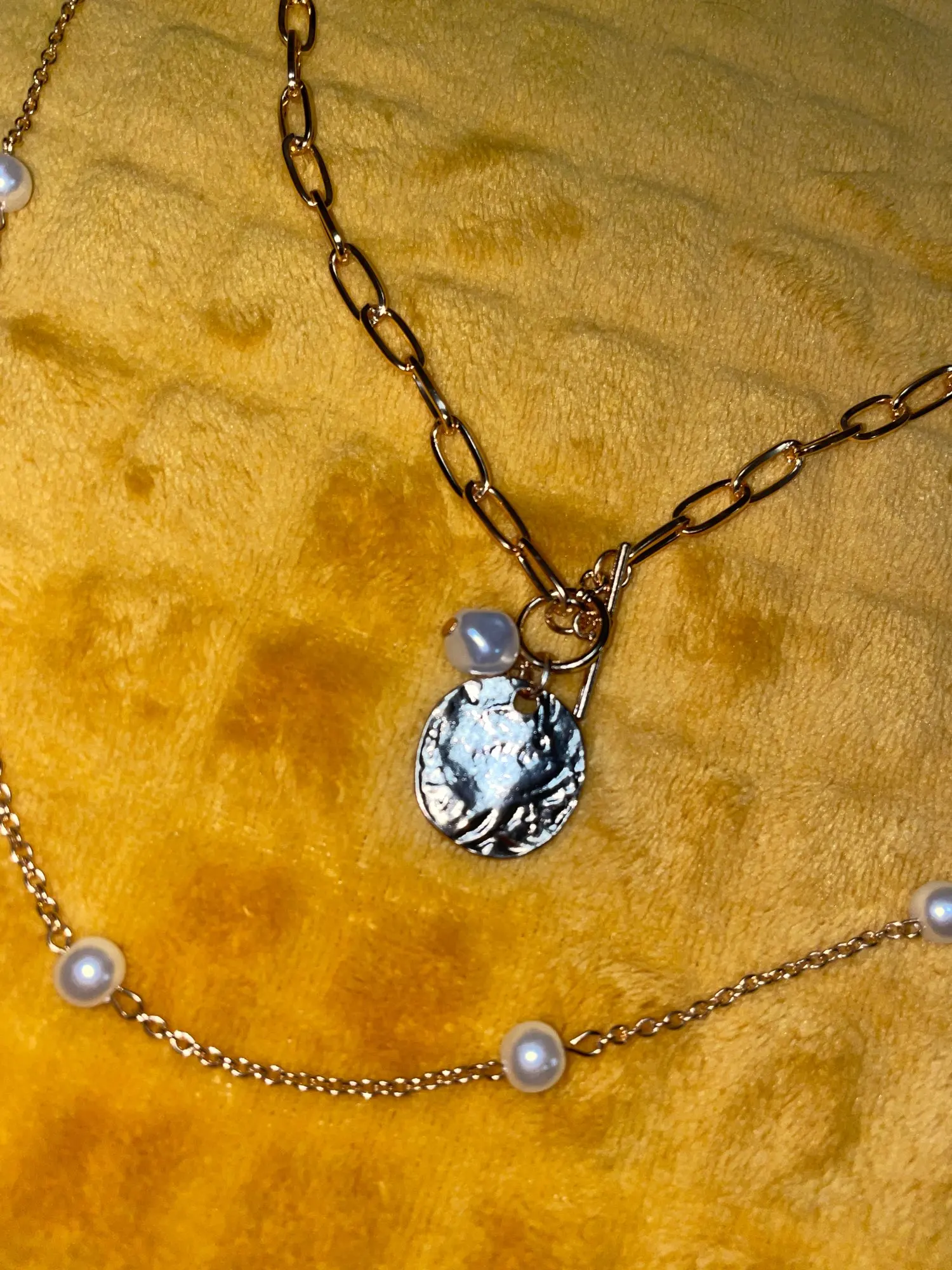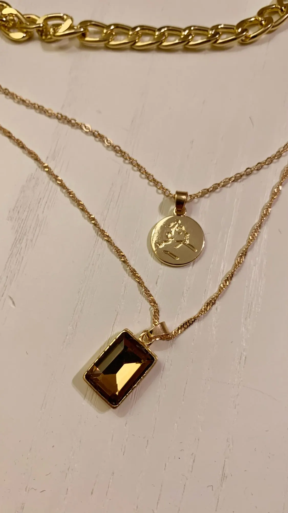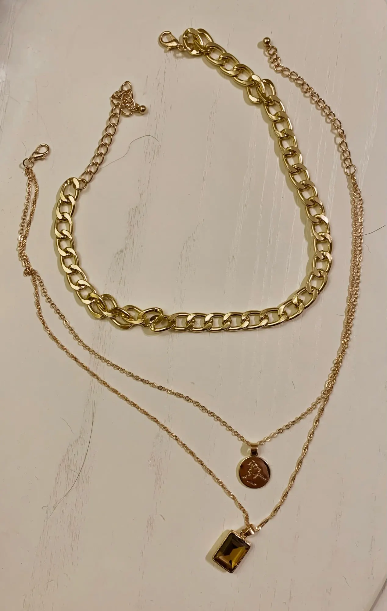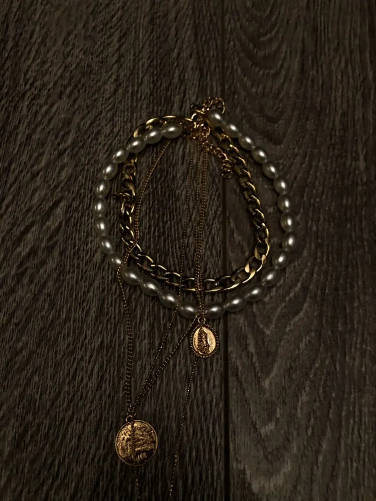 I didn’t know that one of the chains is a locket (and it actually opens), so that was a nice surprise. Ignore my wrinkled shirt in the pic haha