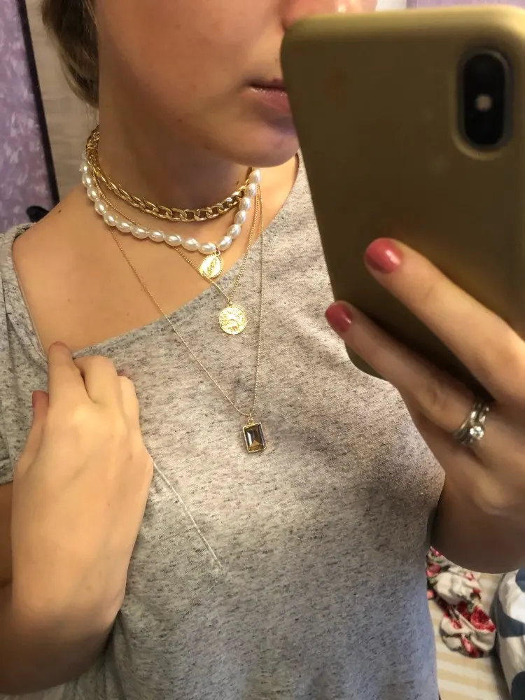 Very satisfied!! Definitely worth taking! Very pleased that the chains are separate, you can adjust the length of the chain, the Gilding does not look cheap, the pendant is light enough, so when walking, it does not knock on