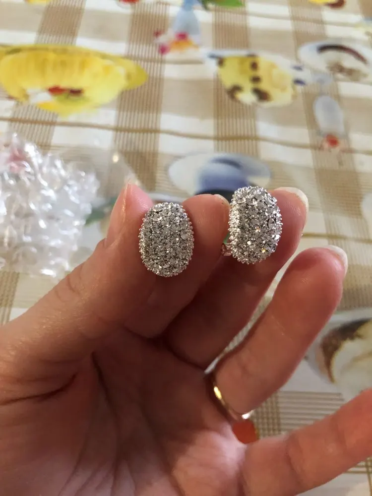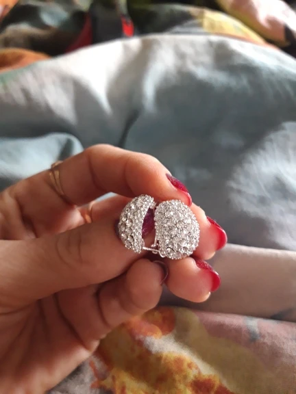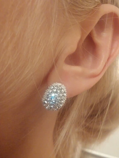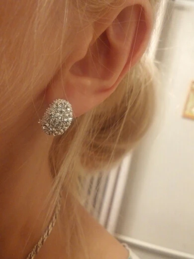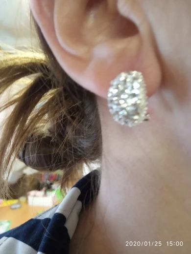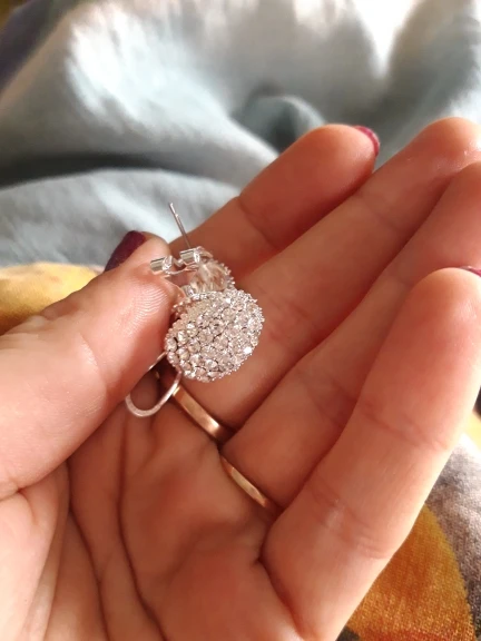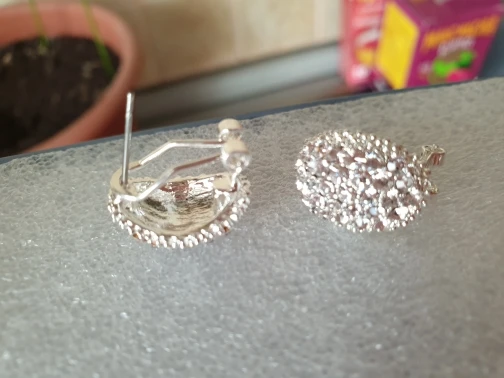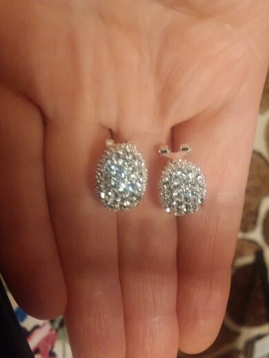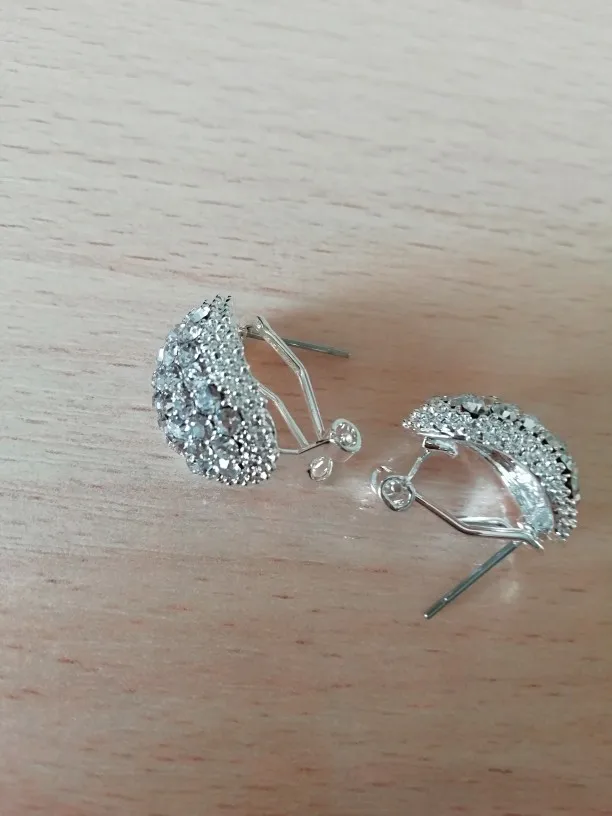 Very beautiful earrings. Dazzling Shine in electric light. Delivery 1 month. Thank you very much and I recommend the product and the seller.