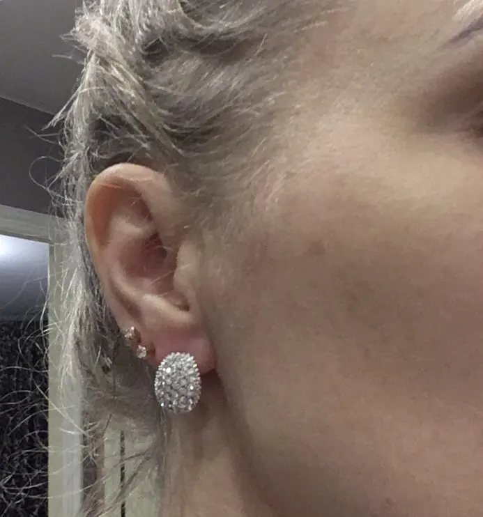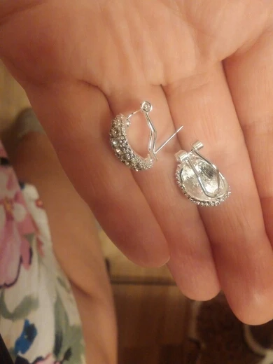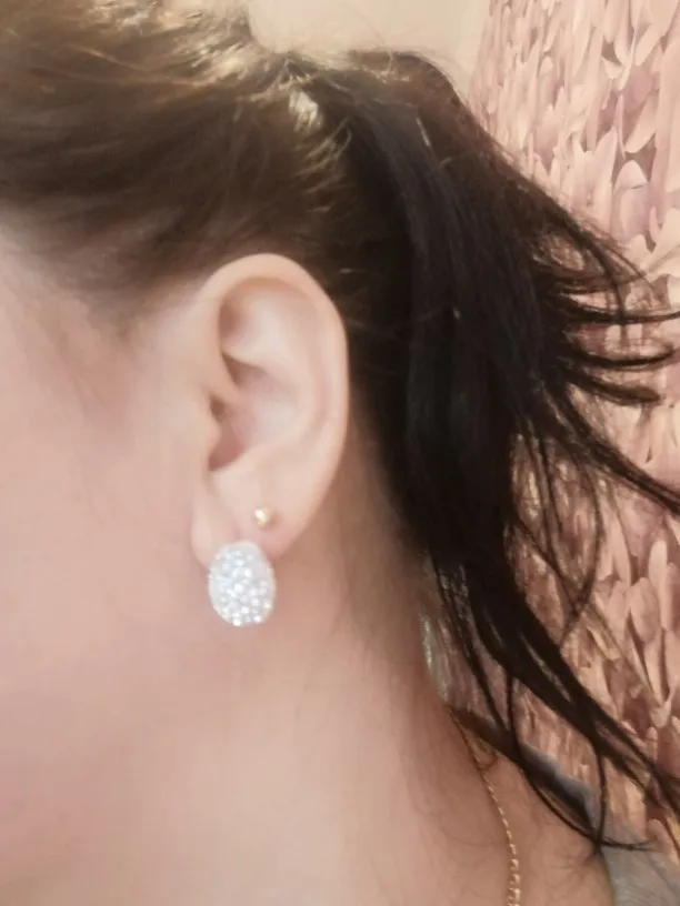 Super earrings, shine in the light amazingly (the photo does not convey shine), look gentle and expensive, comfortable clasp. Went to Izhevsk for a month.