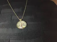 Pretty pendant. Nice chain. Approximately 1 inch. Ordered 7/19/2021, received 9/15/2021.