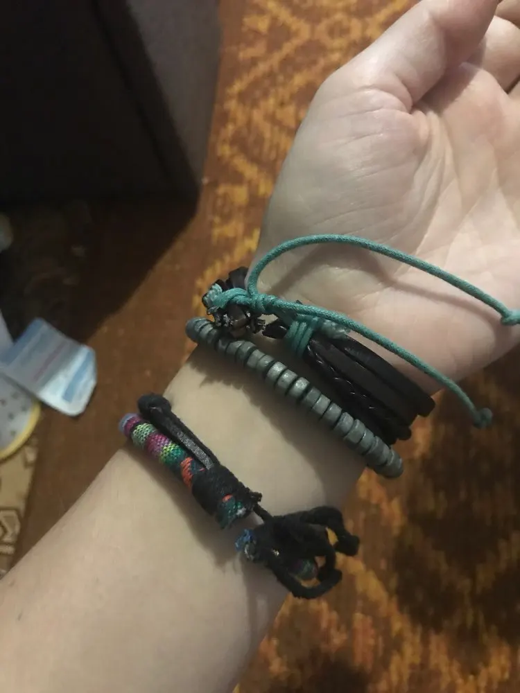 Bracelets are quite decent. I’m not sure that this is genuine leather-rather high-quality leatherette. a little unpleasant smell, but weathered. Fastening threads to the bracelet is not very neat. But, in general, the goods correspond to the seller’s photo. Wear comfortably. Stylish accessory, attracting attention. Only to me personally, it is not convenient to twist and adjust this whole bunch of threads formed from the wrong side after tightening all bracelets. Maybe I just can’t twist them… IMHO, better if he was so solid. In the kit there is a bag for storage. Very convenient. Delivered quickly enough-for a month, despite the fact that the order was in the sales period. Track semi-tracked. They threw it in the mailbox. I recommend the product and the store.