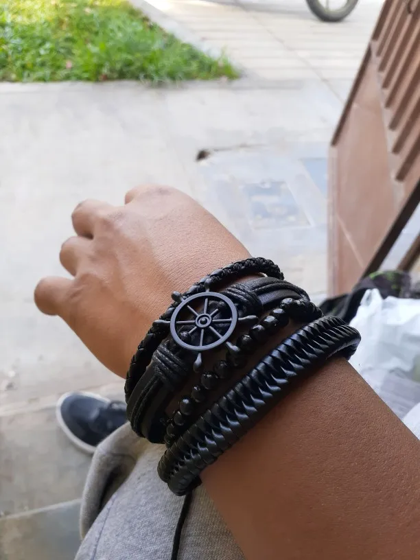 24 reviews for Vnox Mix 4Pcs/ Set Braided Wrap Leather Bracelets for Men Women Vintage Wooden Beads Ethnic Tribal Wristbands Bracelet Rudder