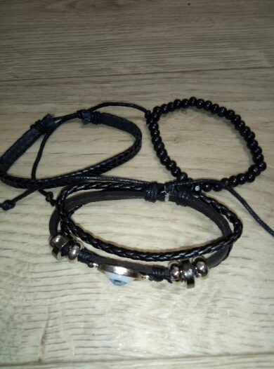 Beautiful and elegant leather bracelets. Set of 3 units. Bought 11/11. Super fast shipping. Recommended shop.